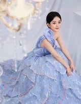 色彩是此次造型的灵魂。深邃而浓郁的湛蓝色,宛如午夜晴空或静谧深海,赋予赵丽颖一种沉静、高贵的底色。这抹蓝色与她白皙的肌肤相得益彰,不仅提亮了肤色,更烘托出一种冷静而深邃的氛围。相较于其早期更多被定义的清新浅色系,这种深蓝色调标志着她个人风格的深化与蜕变,从“甜美少女”走向了更具内涵的“优雅叙事者”。它不喧哗,却自有力量,恰如其分地映射出赵丽颖当下历经锤炼后愈发沉稳从容的内心世界。
